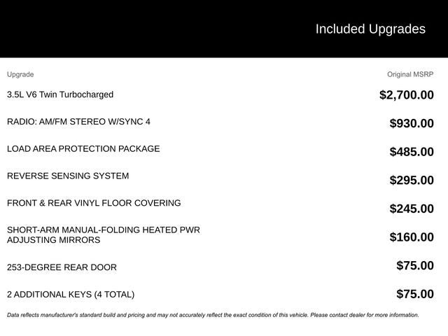 Automatic Transmission, 3D Cargo Van, EcoBoost 3.5L V6 GTDi DOHC 24V Twin Turbocharged, 10-Speed Automatic with Overdrive, AWD, Oxford White, Dark Palazzo Gray Vinyl, Front & Rear Vinyl Floor Covering, Load Area Protection Package, Order Code 101A.