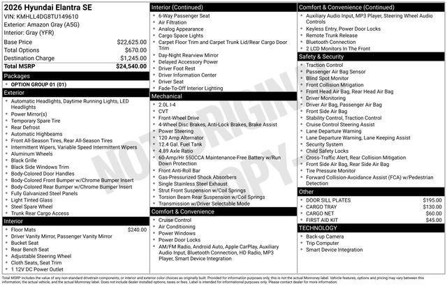 2026 Hyundai Elantra SE 32/41 City/Highway MPG