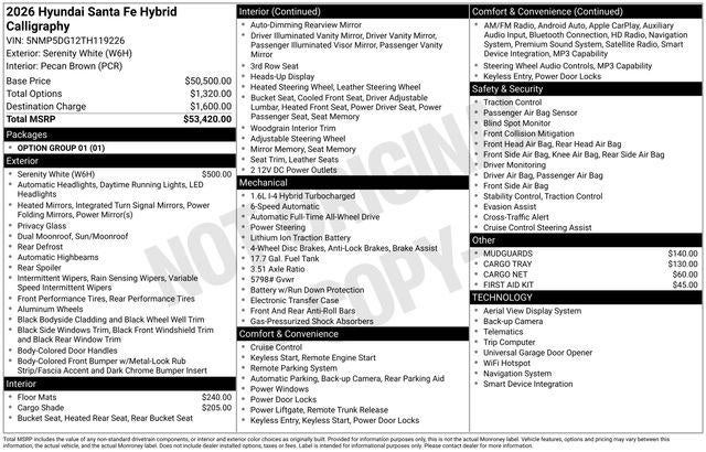 2026 Hyundai Santa Fe Hybrid Calligraphy 35/34 City/Highway MPG
