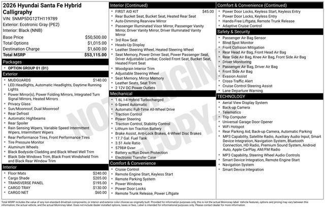 2026 Hyundai Santa Fe Hybrid Calligraphy 35/34 City/Highway MPG